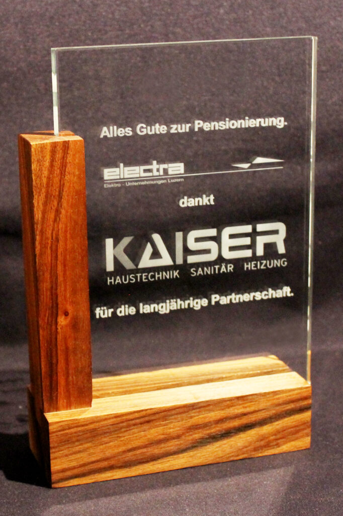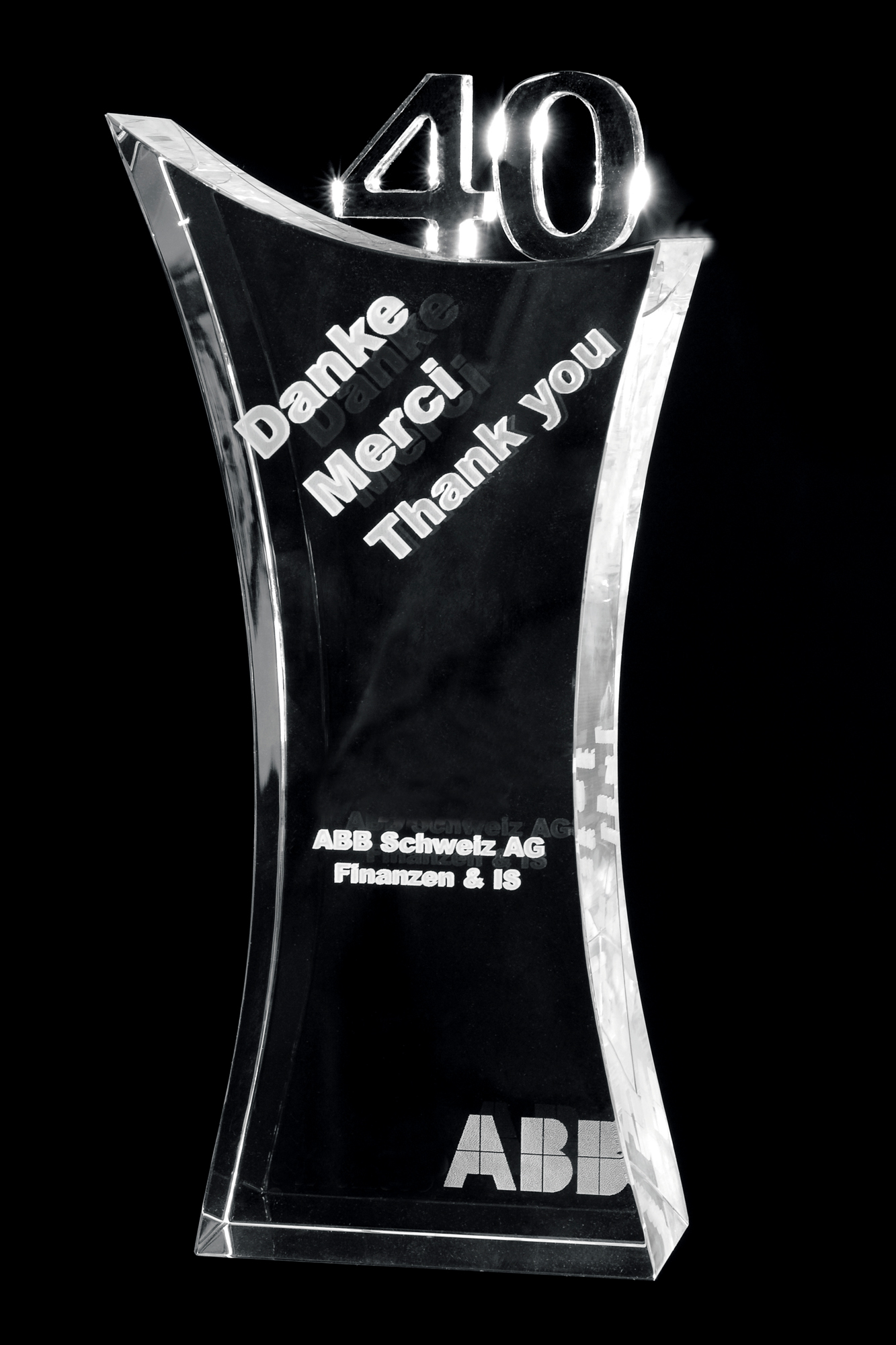 3D-Laser SwissArt AG erstellt personifizierte Awards, Trophäen, Ehrungspreise, Geschenke aus Glas, Kristallglas, Acryl und Metall her.